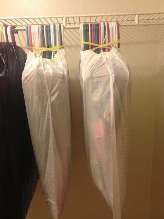 A quick solution for transferring your clothing from one closet to another is to make use of garbage bags. No, we're not criticizing your fashion sense. Instead, we're suggesting using a garbage bag to wrap all your clothing while it's still on the hanger.